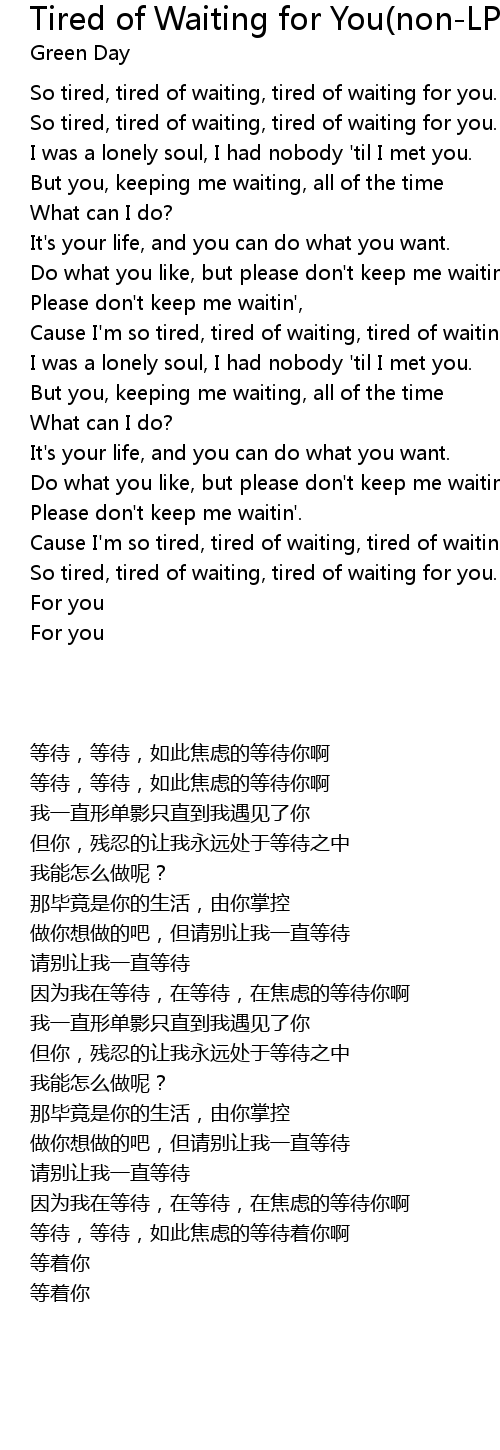 [00:08.14] So tired, tired of waiting, tired of waiting for you.