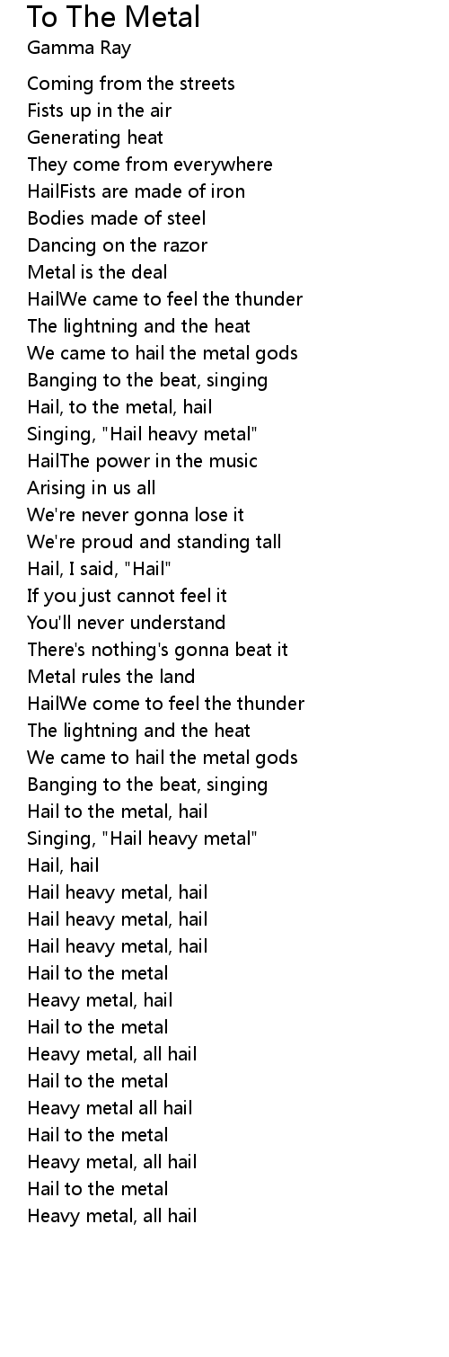 Hail, to the metal, hail |
