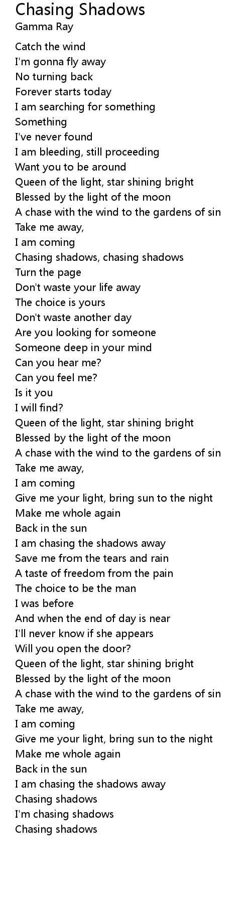 I am chasing the shadows away |