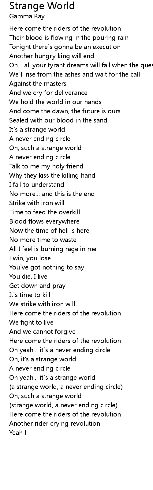 | (a strange world, a never ending circle) | |