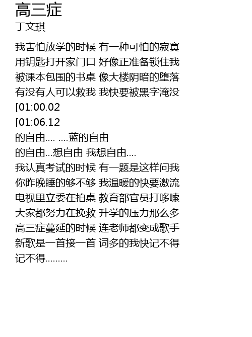| [03:15.07] | 的自由...想自由 我想自由.... |