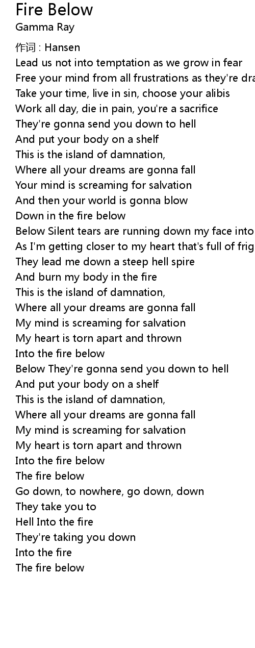 | Down in the fire below | |