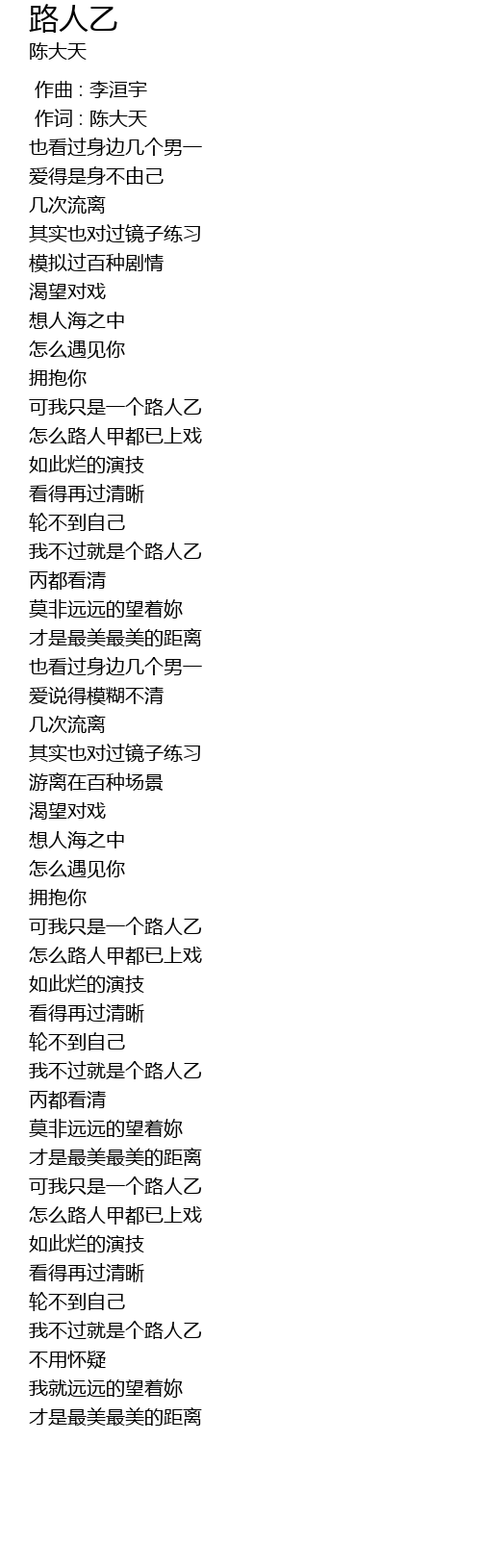 | [00:50.38] | kě wǒ zhǐ shì yí gè lù rén yǐ |