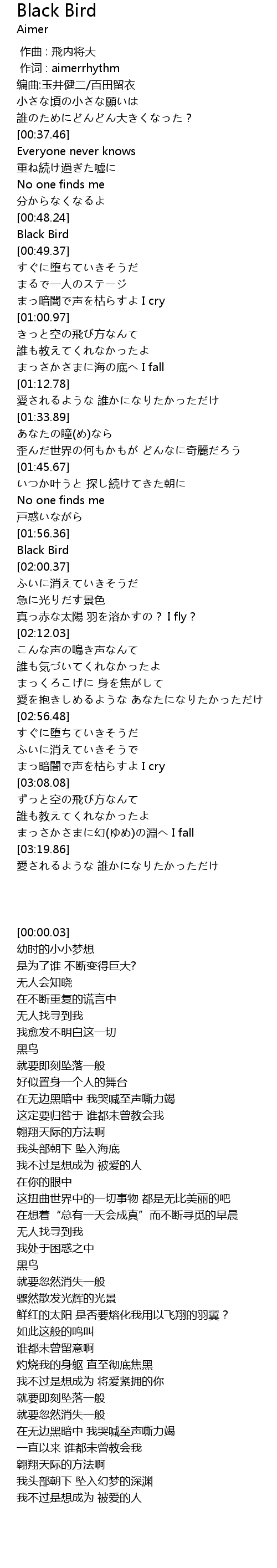 | [03:01.94] | まっ暗闇で声を枯らすよ I cry |