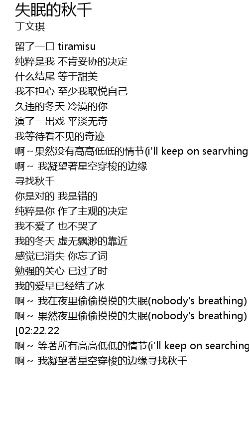 | [02:11.40] | 啊~ 我在夜里偷偷摸摸的失眠(nobody's breathing) |