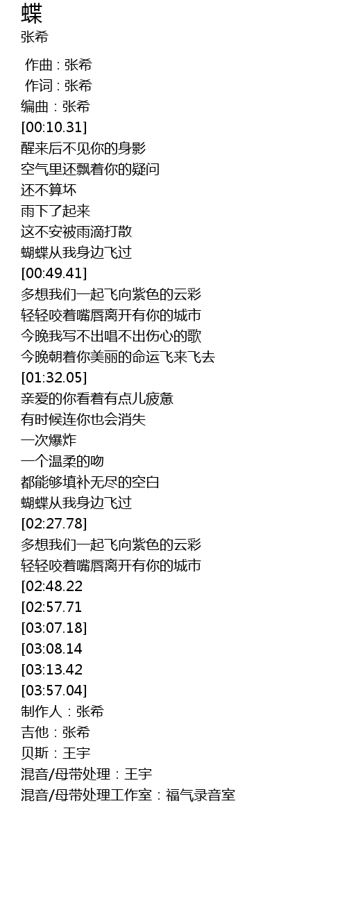 | [04:01.08] | 吉他:张希 |