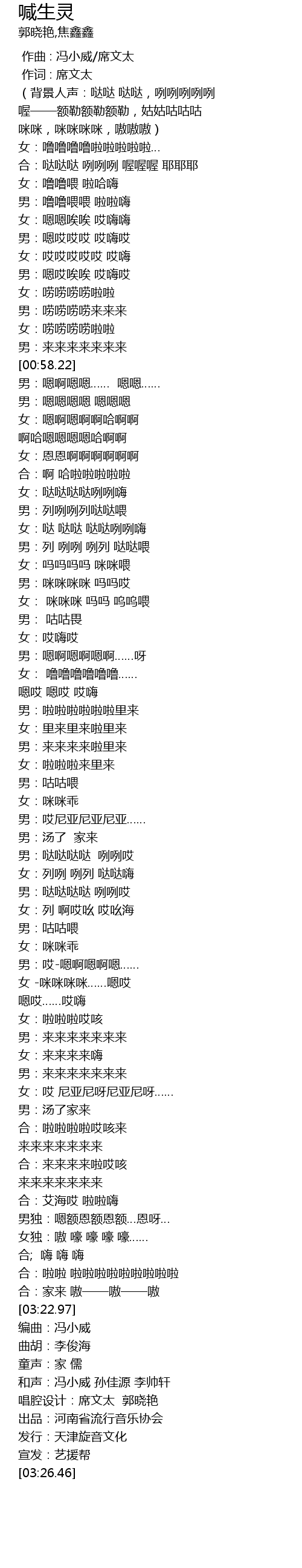 | [01:32.22] | 女:吗吗吗吗 咪咪喂 |