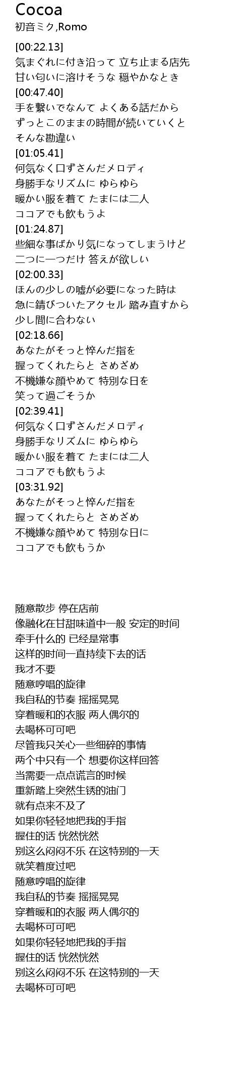 | [03:47.38] | ココアでも飲もうか |