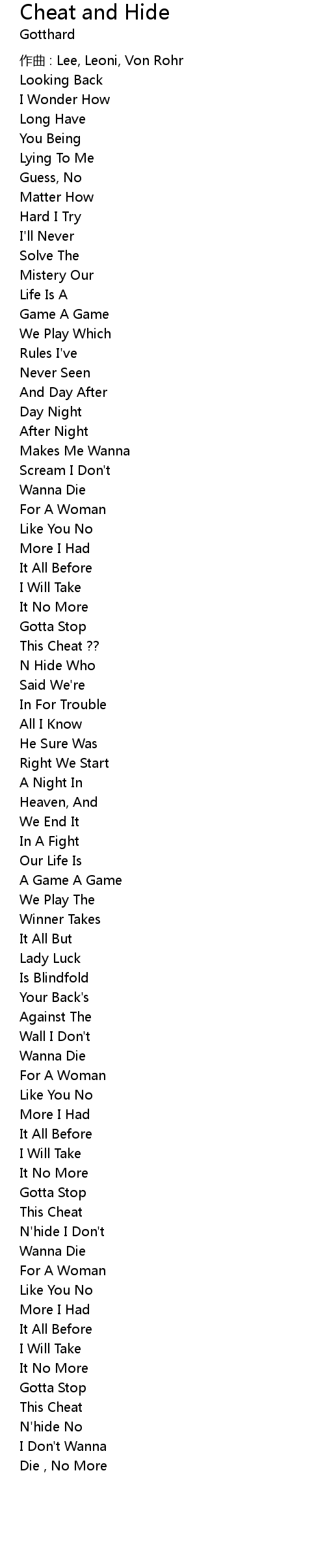 | 作曲 : Lee, Leoni, Von Rohr | |