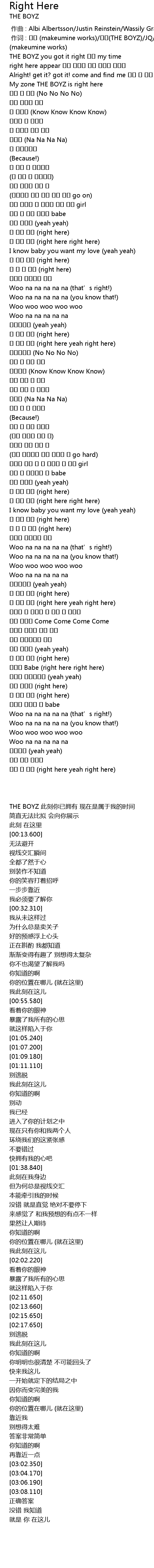 | [00:13.600] | My zone THE BOYZ is right here |
