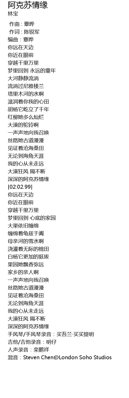 | [04:23.40] | 混音:Steven Chen@London Soho Studios |