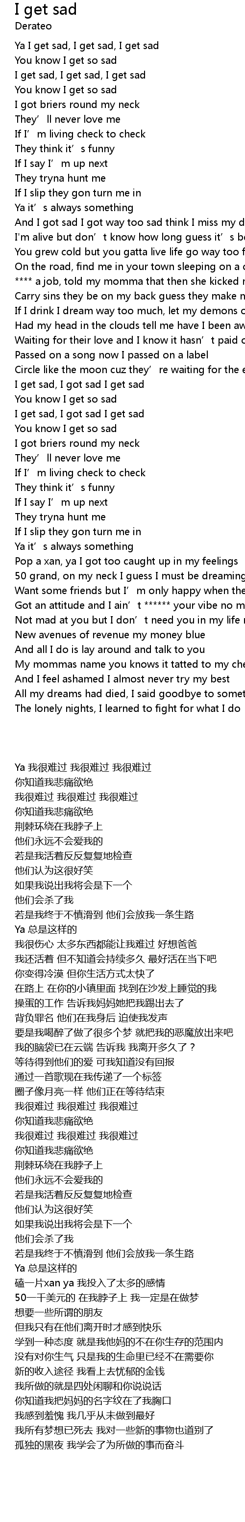 | [00:13.62] | Ya I get sad, I get sad, I get sad |