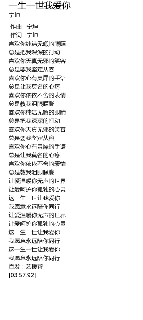 | [03:38.39] | zhè yī shēng yī shì ràng wǒ ài nǐ |