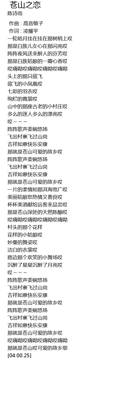 | [03:41.03] | 那就是苍山可爱的故乡哎 |