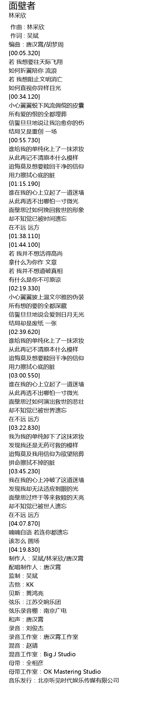 | [04:22.050] | 制作人:吴斌/林采欣/唐汉霄 |