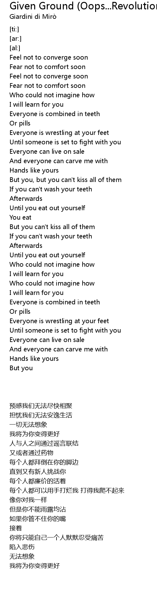 Given Ground (Oops...Revolution on Your Pins) Lyrics