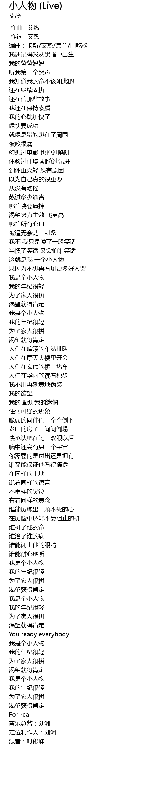 | [01:15.800] | 我是个小人物 |
