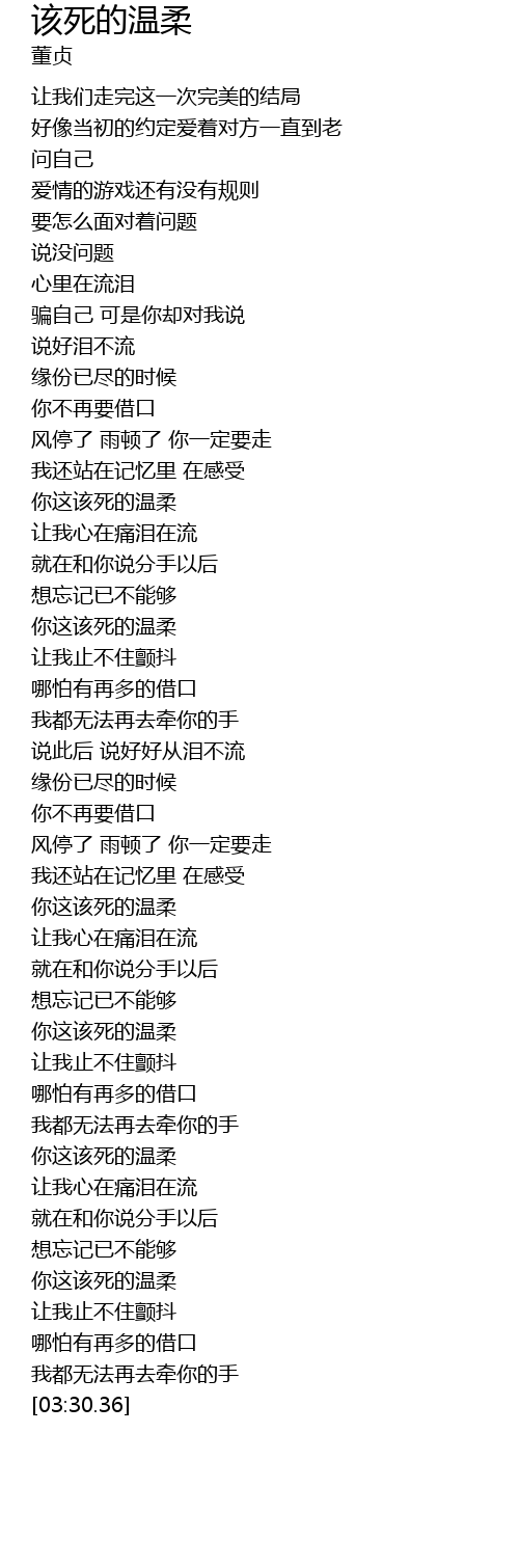 | [02:26.78] | nǐ zhè gāi sǐ de wēn róu |