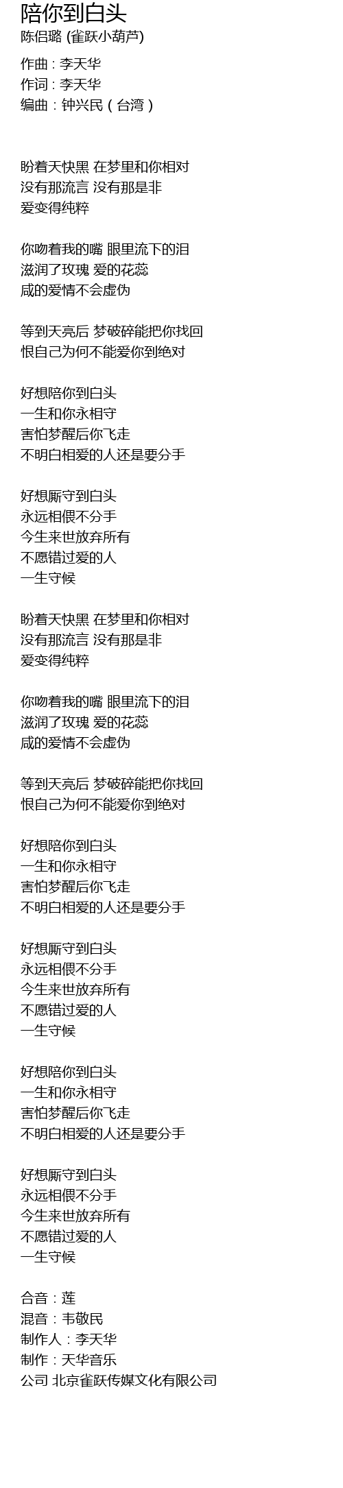 | Album | 陪你到白头 |