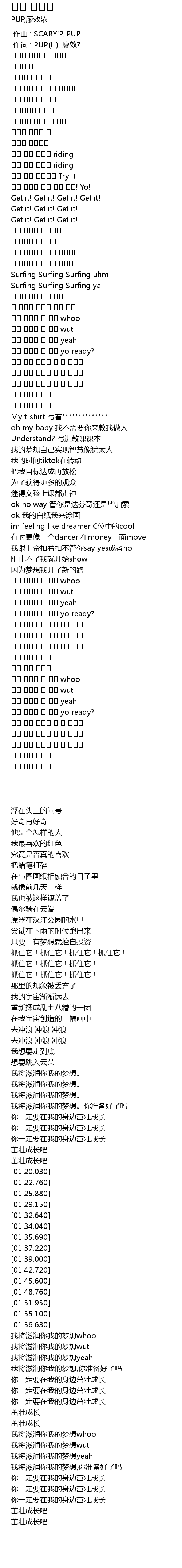 | [00:01.000] | zuò cí : PUP, liào xiào? |