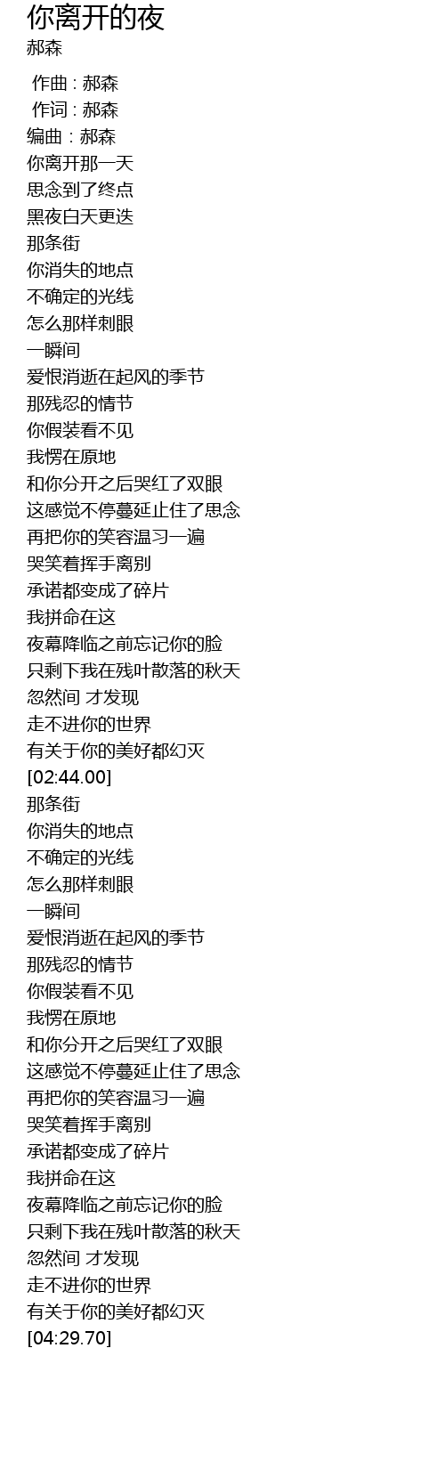 | [04:04.02] | 夜幕降临之前忘记你的脸 |