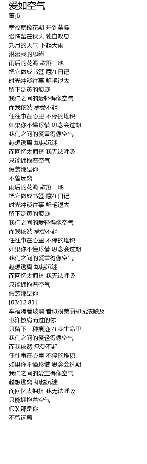 | [03:35.26] | 我们之间的爱轻得像空气 |