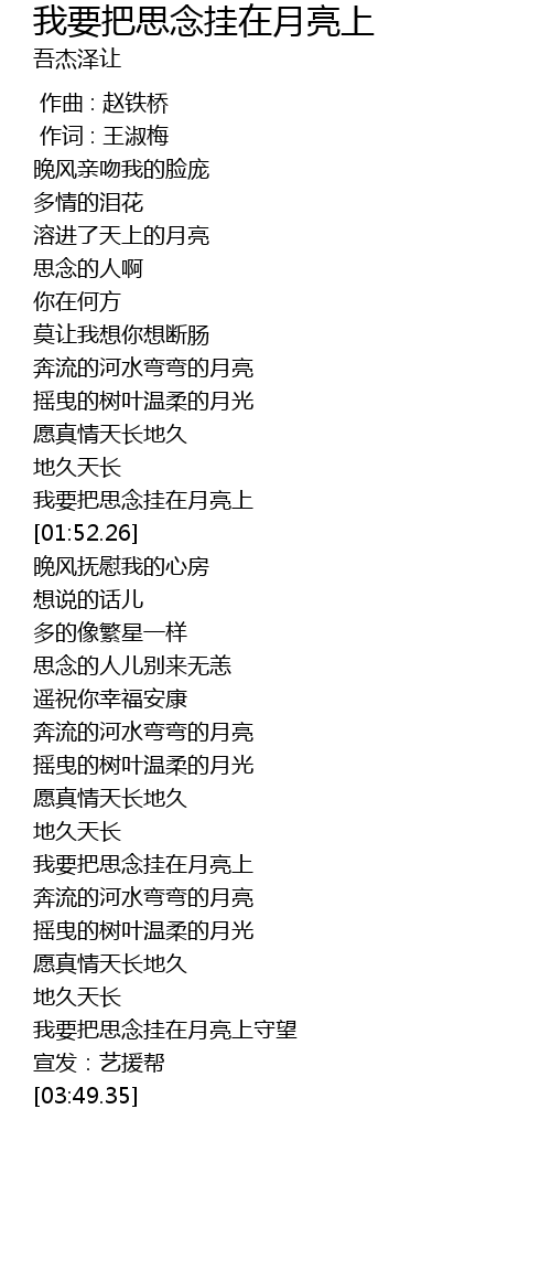 | [01:38.59] | 我要把思念挂在月亮上 |