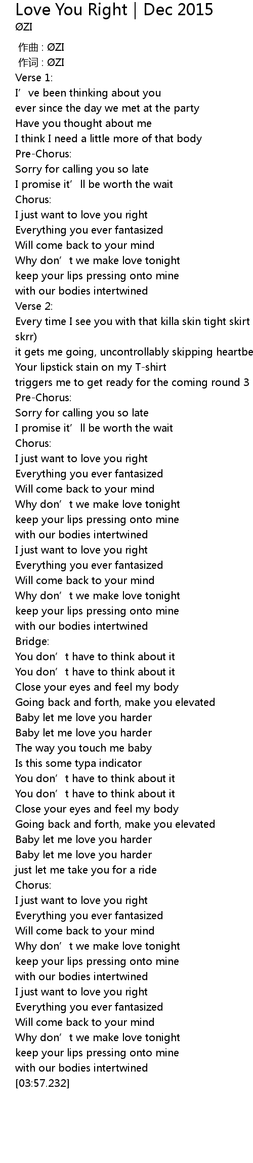 | [00:59.316] | I just want to love you right |