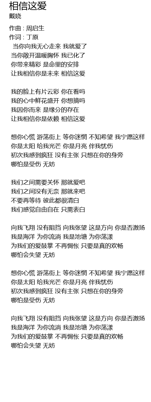 | rang wo xiang xin ni shi yi lai xiang xin zhe ai | |