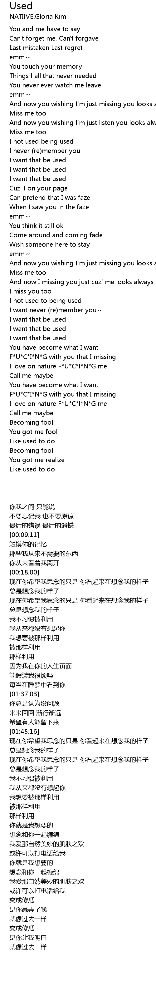 | [01:46.21] | And now you wishing I'm just missing you looks always miss me too |