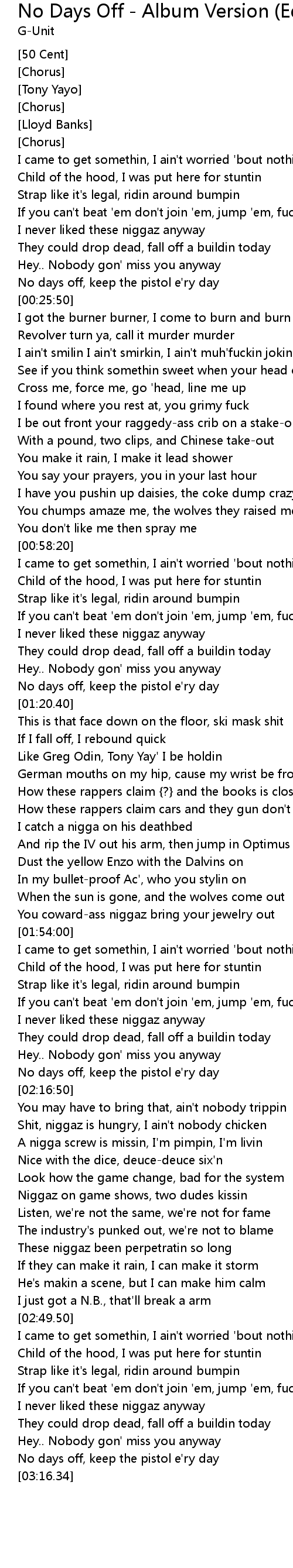 No days off, keep the pistol e'ry day |