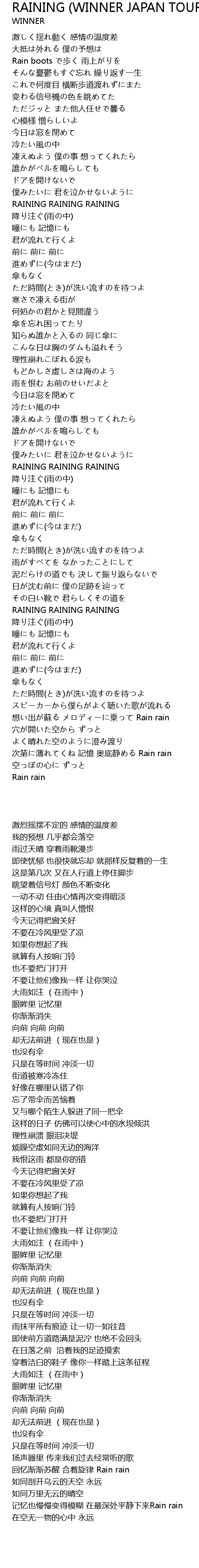 | [03:04.400] | 想い出が蘇る メロディーに乗って Rain rain |