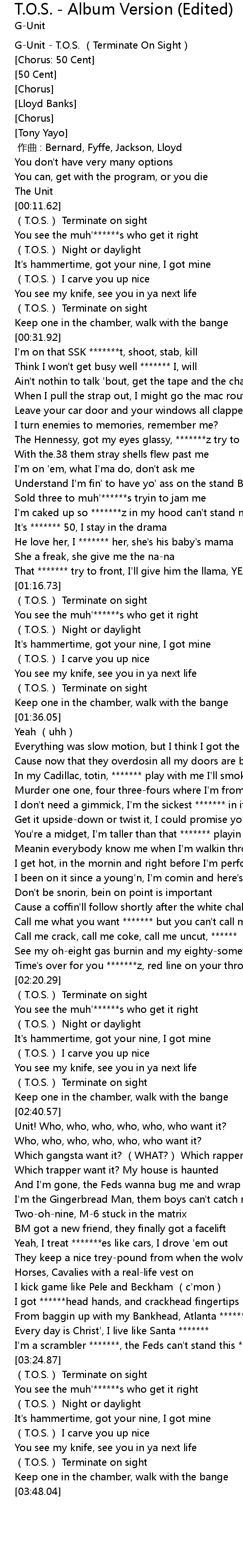 | [00:-04.52] | GUnit T. O. S. Terminate On Sight |