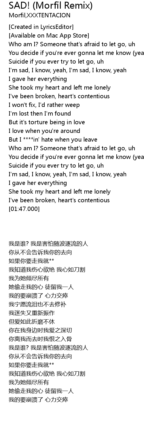 SAD! (Morfil Remix) Lyrics