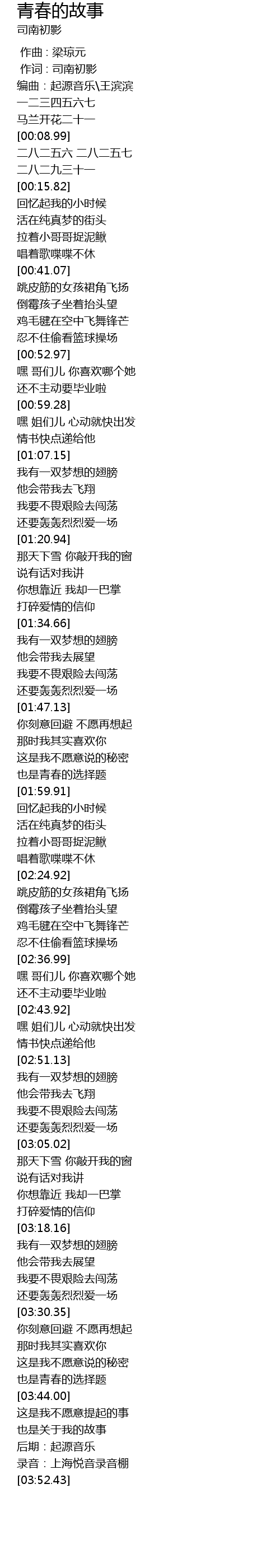 | [01:56.36] | yě shì qīng chūn de xuǎn zé tí |