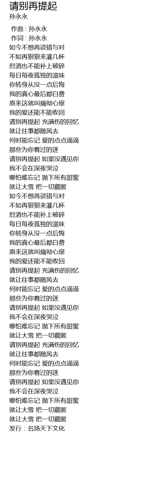 | [02:45.02] | 请别再提起 充满伤的回忆 |