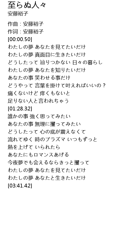 | [03:34.44] | わたしの夢 あなたと生きたいだけ |