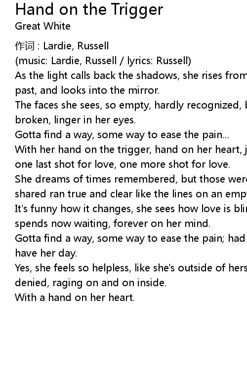 | Song | Hand on the Trigger |
