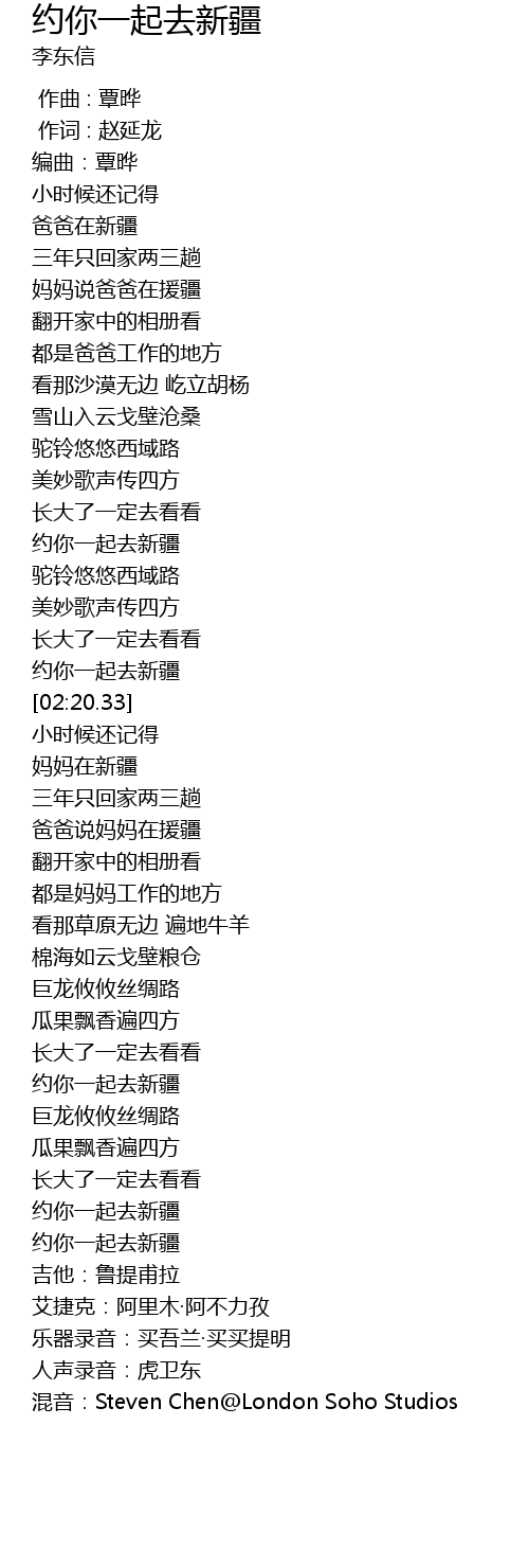 | [03:46.39] | 约你一起去新疆 |