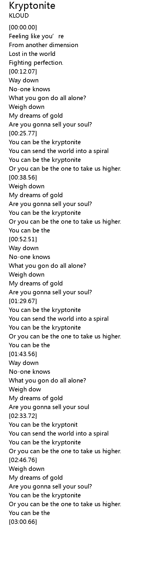 | [01:36.14] | You can be the kryptonite |