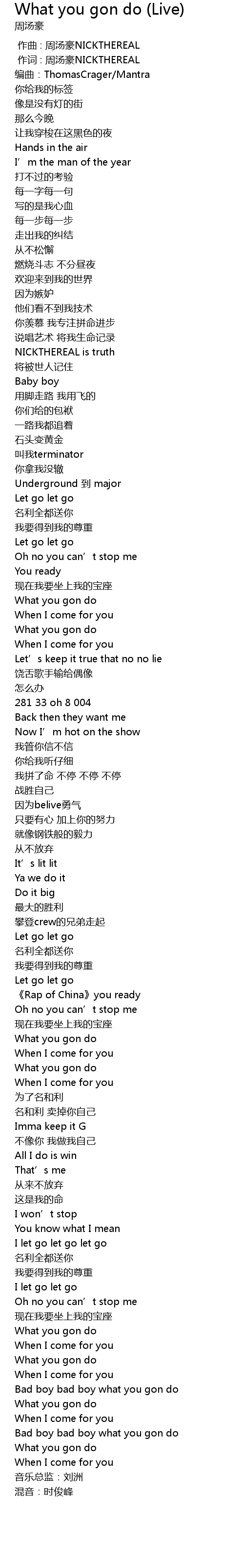 | [00:01.000] | 作词 : 周汤豪NICKTHEREAL |