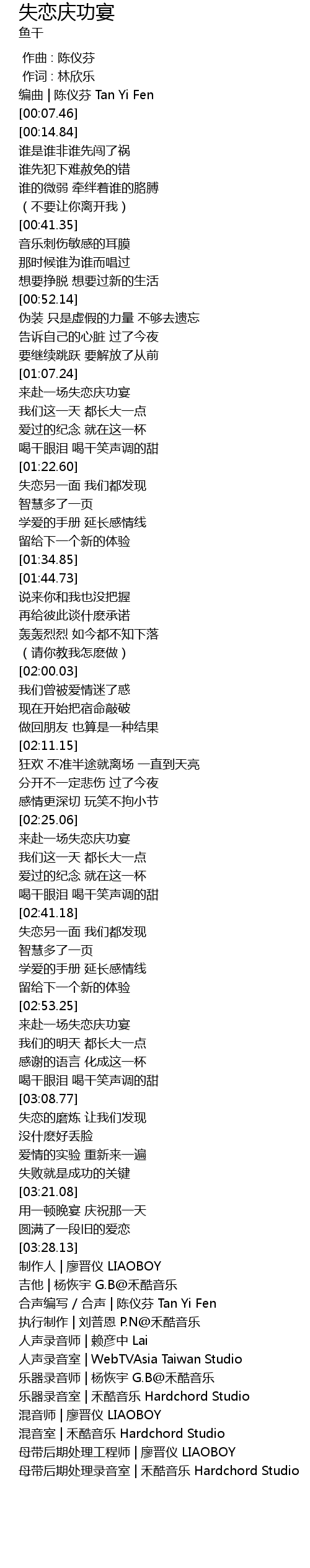 | [03:43.13] | 混音师 | 廖晋仪 LIAOBOY |