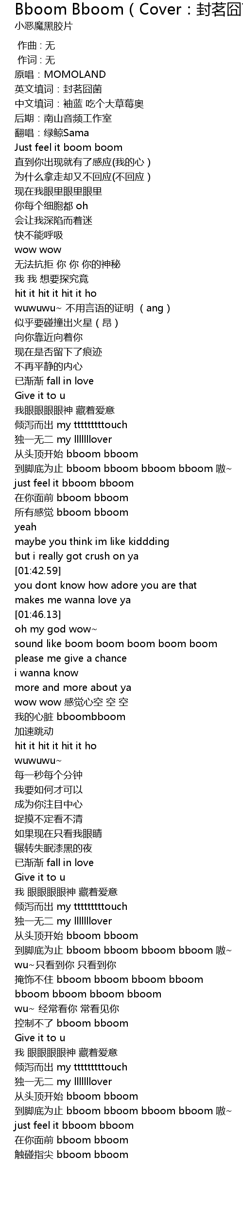 | Song | Bboom Bboom(Cover:封茗囧菌) |