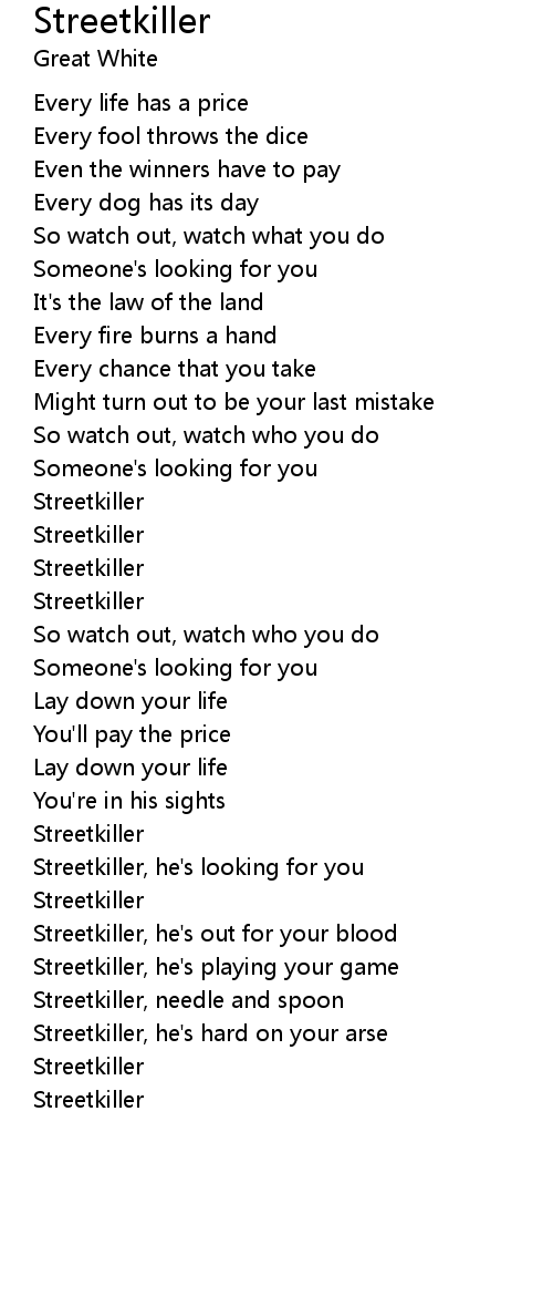 Streetkiller, he's looking for you |