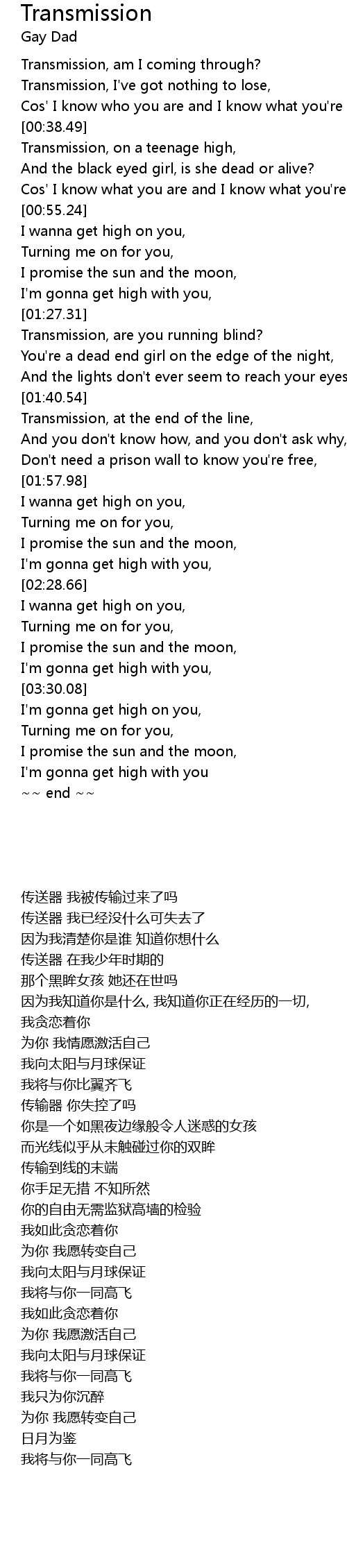 Transmission, I've got nothing to lose, |