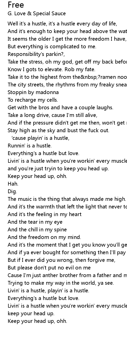 | Livin' is a hustle when you' re workin' every muscle, and you' re just tryin' to keep your head up. | |