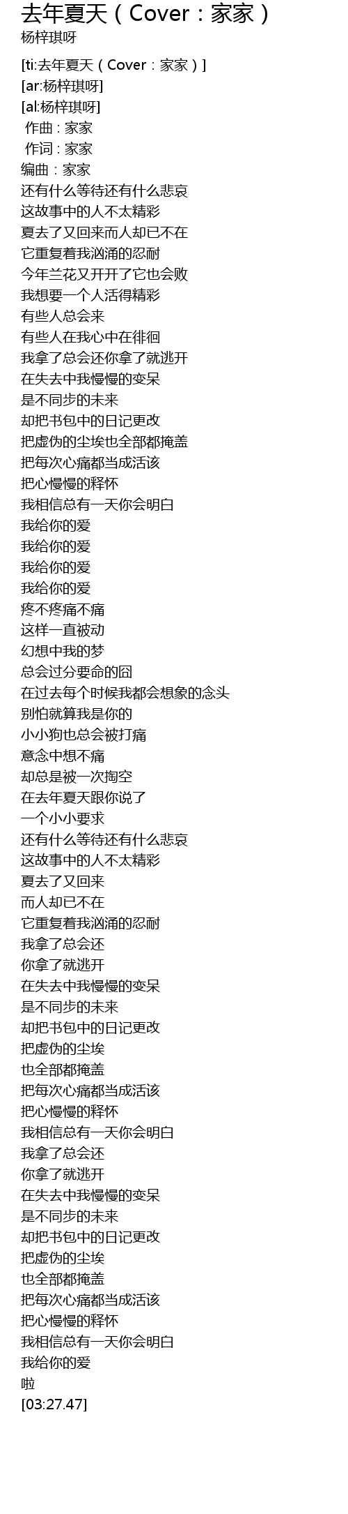 | ti: qù nián xià tiān Cover: jiā jiā | |