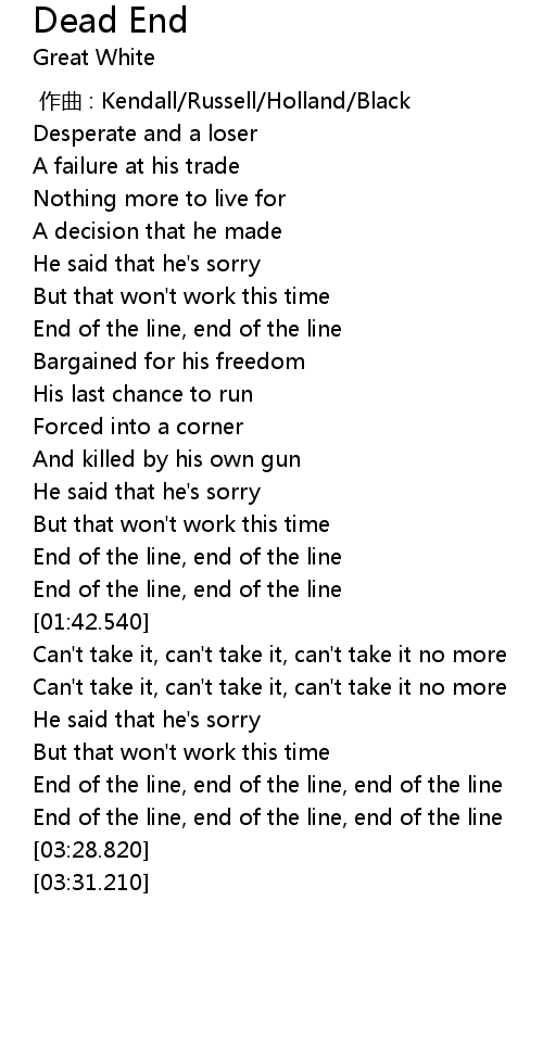 | [03:13.800] | End of the line, end of the line, end of the line |