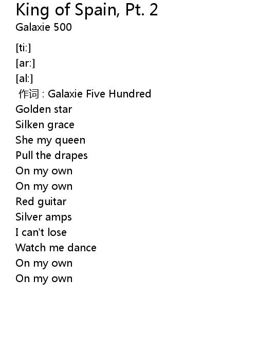 | [00:00.00] | 作词 : Galaxie Five Hundred |