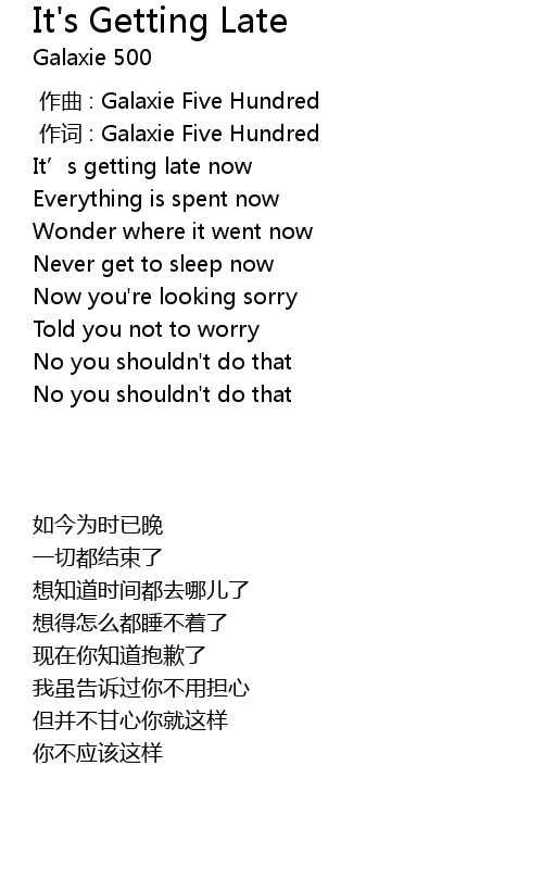 | [00:01.00] | 作词 : Galaxie Five Hundred |